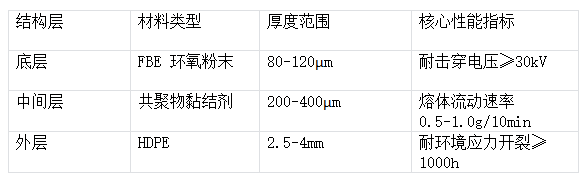 · 某工程剥离试验显示,黏结层与 PE 外层的结合强度≥100N/cm,确保三层结构的协同防护